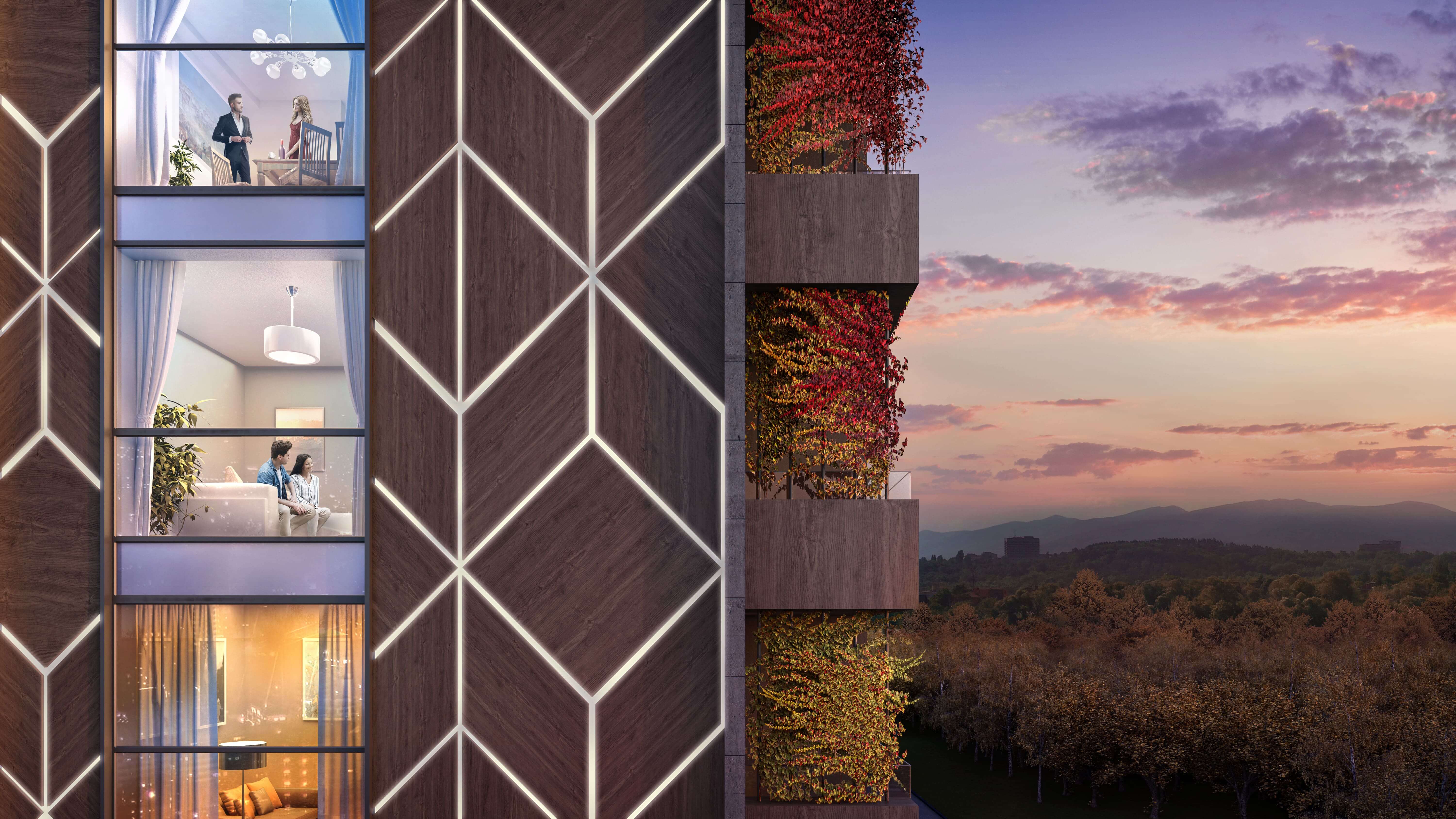 Резиденция Маунтин Вью расположена в прекрасном месте Софии, рядом со всем необходимым для комфортной жизни современного человека. Стильное видение здания – работа ведущей архитектурной студии ELITE Project Group. Каждая деталь спроектирована в гармонии с идеей комфорта и удобства, от безупречно спроектированных резиденций и элегантных помещений общего пользования до прекрасного двора!