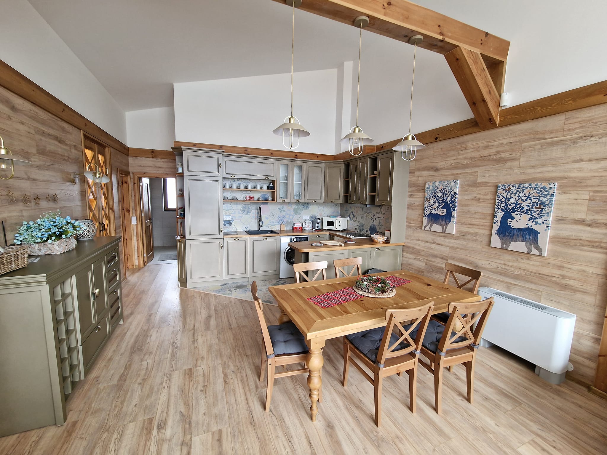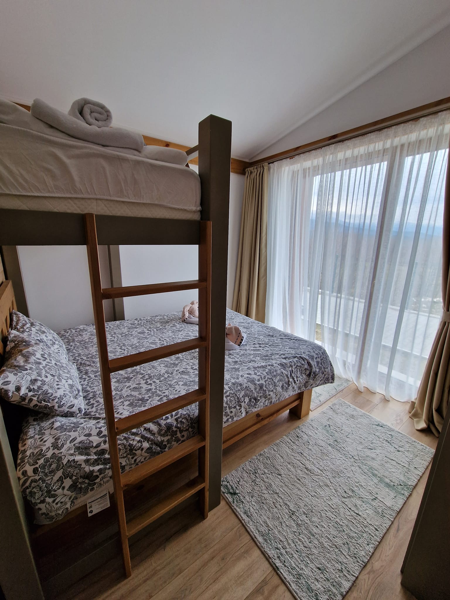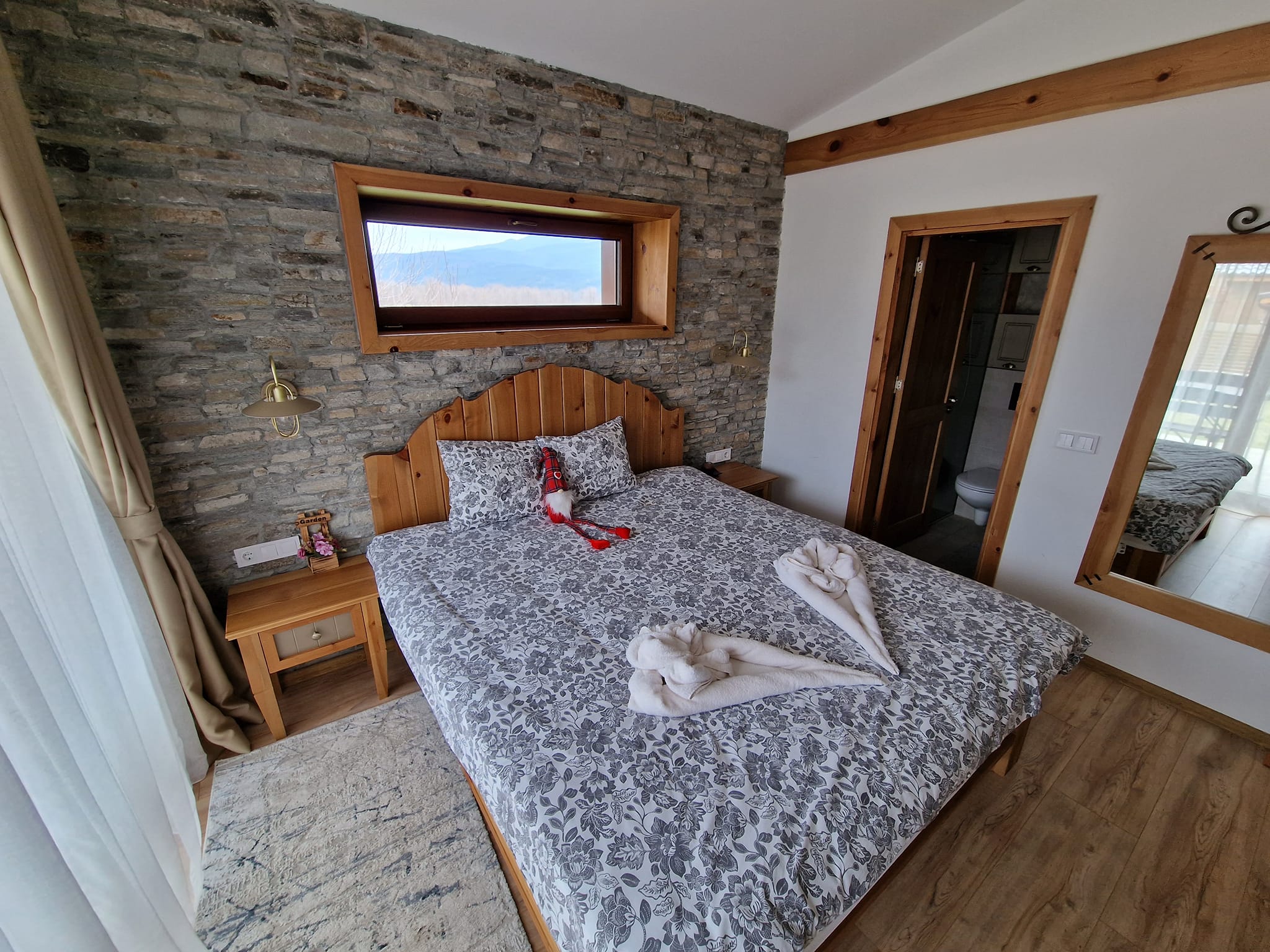 Планировка помещений: прихожая с сауной, просторная гостиная с камином, столовая и кухонный уголок, три спальни, одна главная спальня с примыкающей к ней ванной и туалетом, вторая ванная с туалетом, веранда с барбекю и большой двор с 215 кв.м. С веранды и гостиной дома открывается прекрасный вид на гору Пирин.