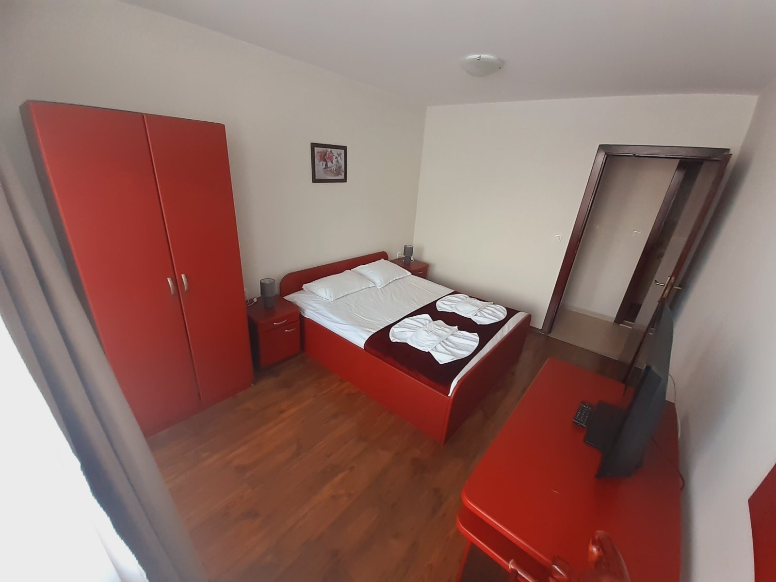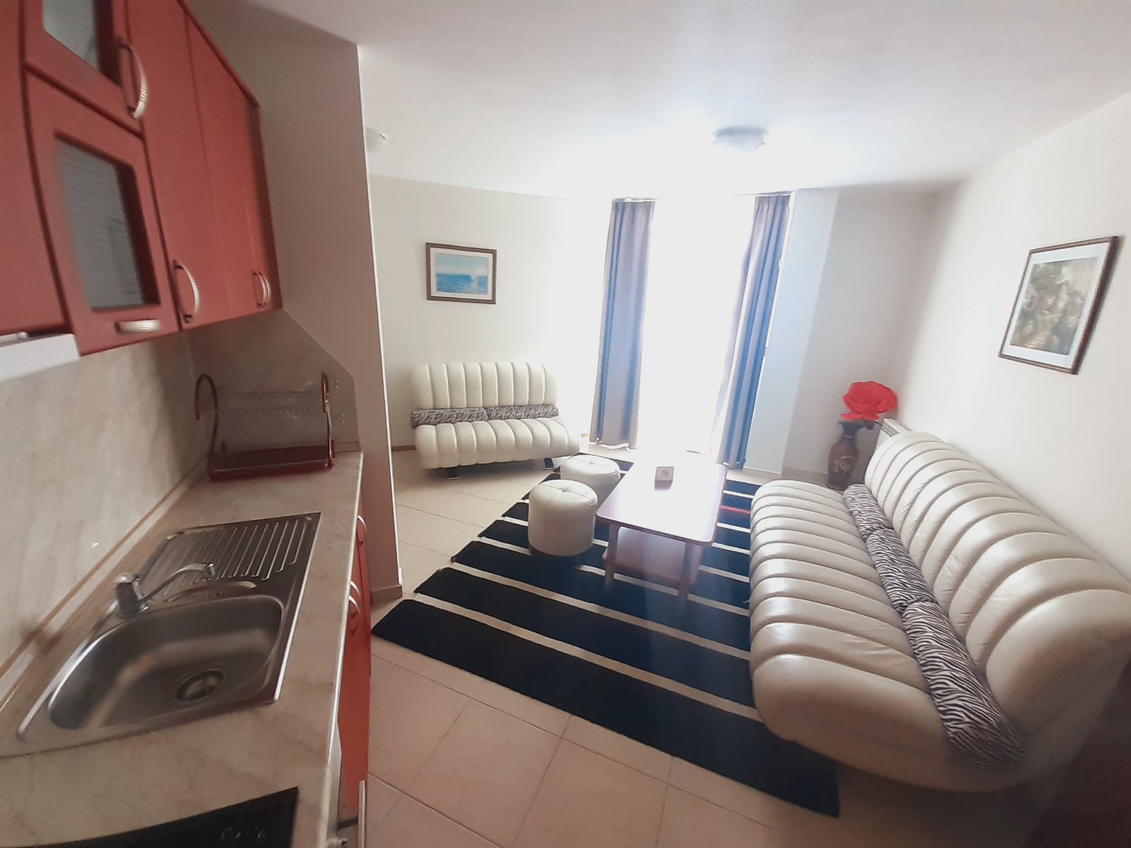 Трехкомнатная квартира с видом на юго-запад, общей площадью 97,20 кв.м. рассчитан на 6 человек и состоит из просторной гостиной с кухней и обеденной зоной, двух спален, просторной ванной комнаты с душем, туалета с раковиной и террасы. Кухонный уголок полностью оборудован всей необходимой бытовой техникой. Спальни без перехода: в одной двуспальная кровать, шкаф и телевизор, в другой две односпальные кровати, тумбочки и шкаф.