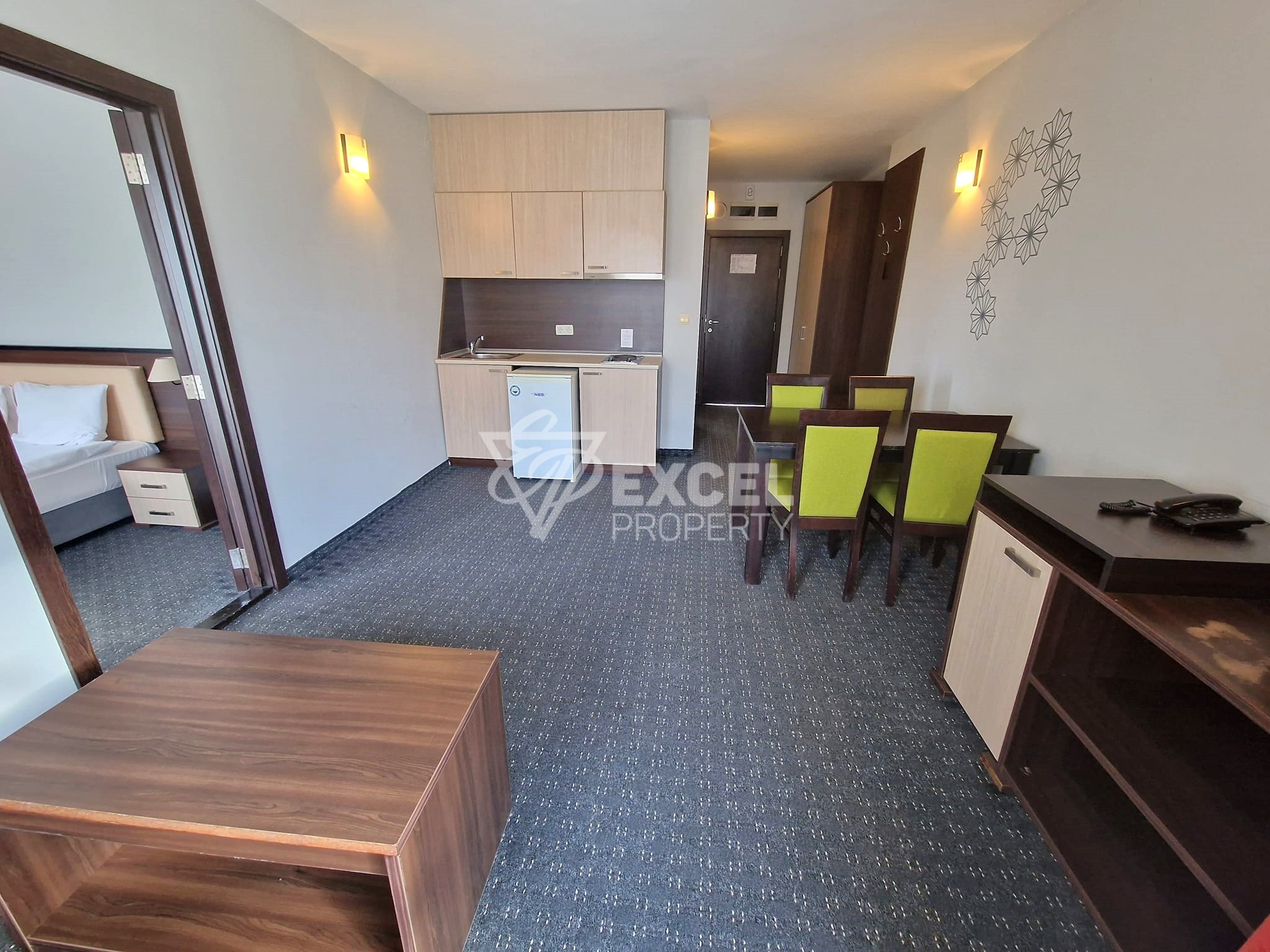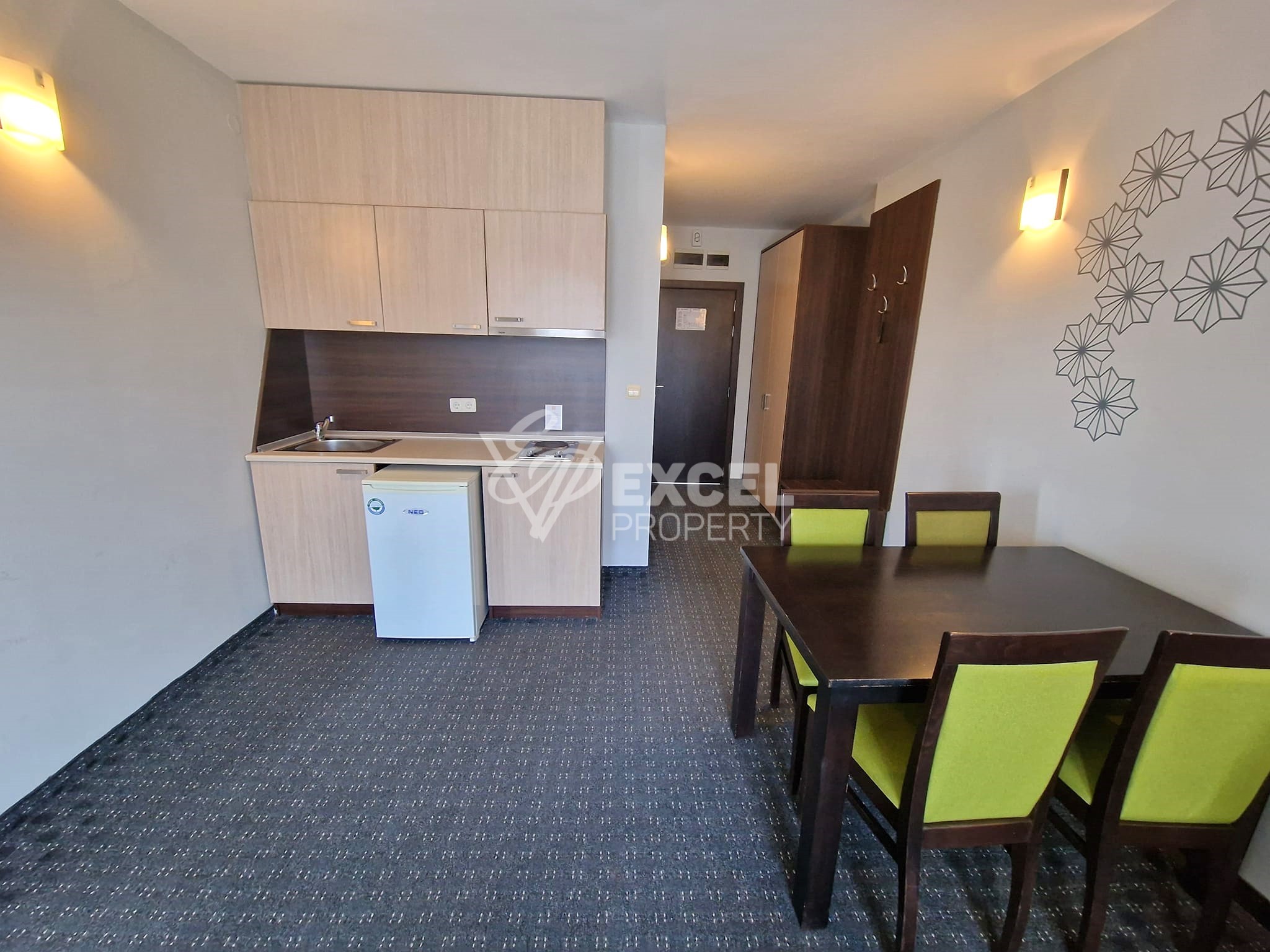 Планировка: гостиная с кухней и столовой, спальня, ванная комната с туалетом и две террасы с прекрасным видом на горы Пирин. Юго-западная экспозиция!