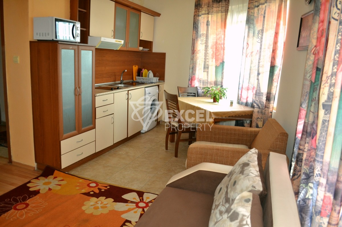 Предлагаем на продажу недвижимость, расположенную в северной части курорта Солнечный берег, всего в 600м от пляжа, недалеко от города Святого Власа и района Кошарица.Недвижимость общей площадью 69м2 расположена на первом этаже (не на партере) в комплексе Черное море - Блек Сий. Здание построено в 2010 году, имеет Акт 16, есть лифт. В квартире есть одна спальня, гостиная, с полностью оборудованной кухней с холодильником, плитой, микроволновой печью и стиральной машиной, а также ванная комната с душем. Выход на террасу со стороны гостиной. С балкона открывается вид на тихую часть здания. В квартире также есть кондиционер и телевизор.