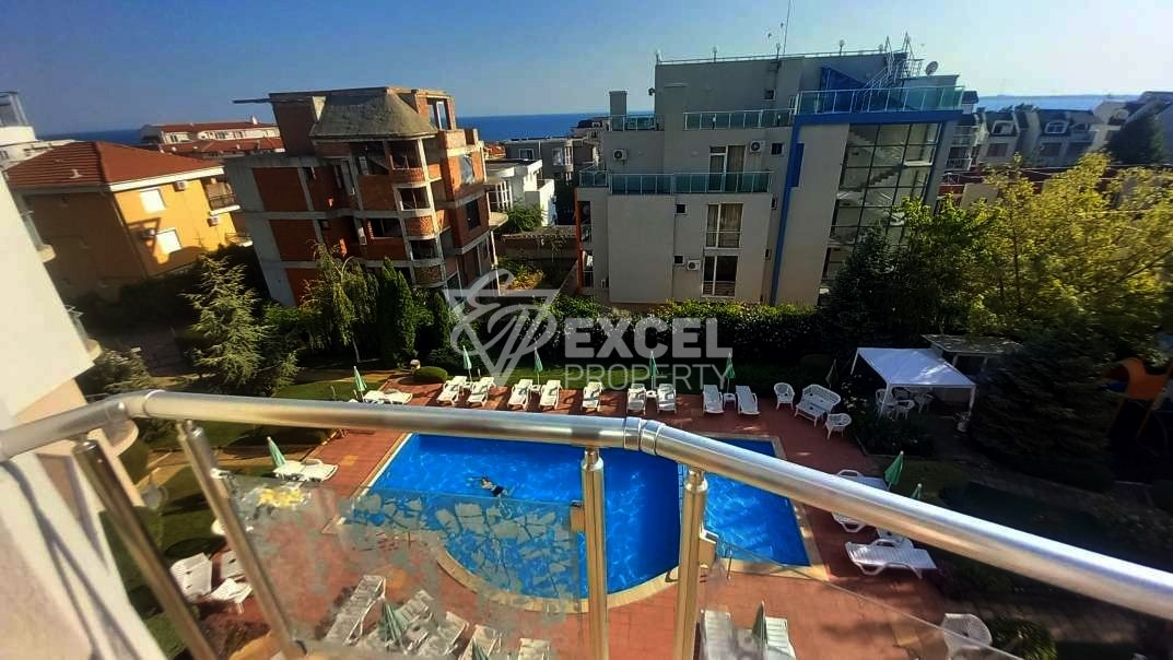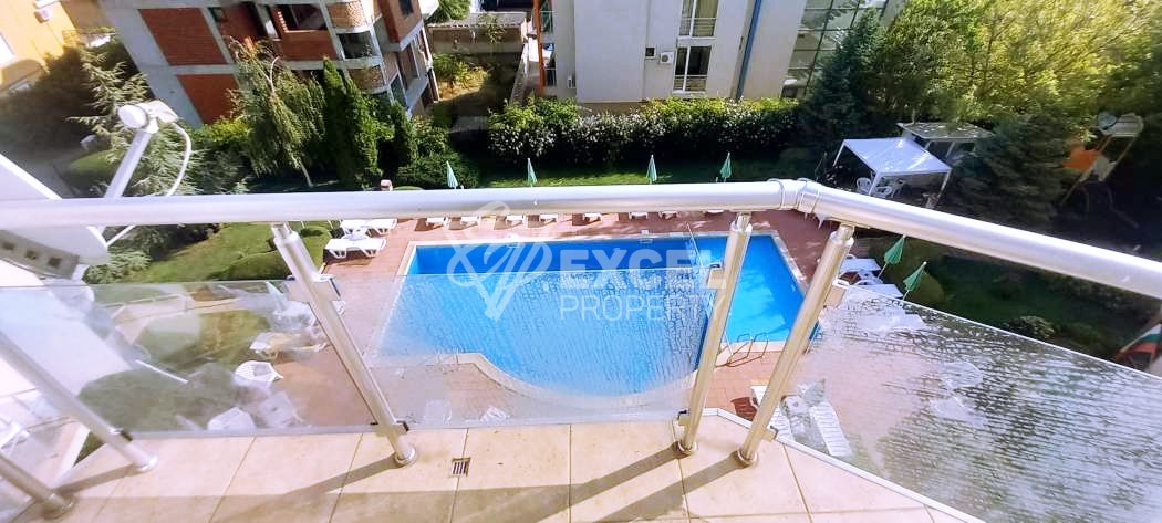 Предлагаем на продажу двухкомнатную квартиру в комплексе Морская звезда-Старфиш, расположенном в городе Святой Влас. Квартира находится на 2-м этаже пятиэтажного монолитного дома /без лифта/. Общая площадь квартиры 64,76 кв.м, чистая площадь- 57,05 кв.м. Распределение квартиры: отдельная прихожая, гостиная с кухней, одна спальня, ванная комната с туалетом и две террасы. Квартира продается полностью меблированной и оборудованной, готовой к проживанию или сдаче в аренду. На кухне есть встроенный холодильник, стиральная машина, электроплита, раковина, микроволновая печь и вытяжка. В гостиной есть телевизор и кондиционер, а также раскладной диван. С террас открывается приятный вид на море, бассейн и двор комплекса. Здание в хорошем состоянии, имеет Акт 16. В комплексе имеется красивый бассейн с детской секцией, а также замечательный пляж, который находится всего в 150 метрах от здания. Есть зеленые зоны, видеонаблюдение, детская площадка и парковочные места перед домом.