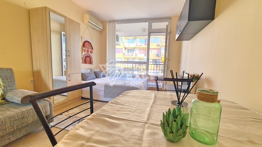 Предлагаем Вам наше новое предложение на продажу - прекрасно обставленную студию в центре города. Солнечный пляж. Недвижимость расположена на третьем этаже комплекса Sunset Beach 4. Комплекс расположен в самом развитом, центральном районе курортного комплекса. Рядом есть вся необходимая инфраструктура для проживания или сдачи в аренду. Он также подходит для круглогодичного проживания. В 5 минутах ходьбы находится поликлиника, детский сад, школа, крупный супермаркет, а также самый популярный в районе аквапарк - Action Aqua Park.