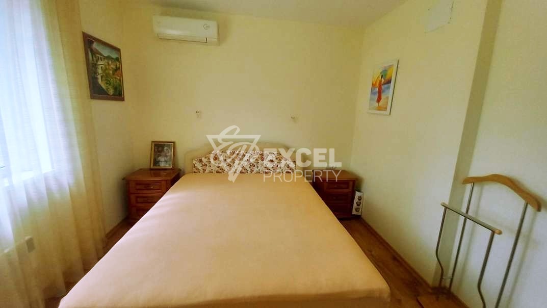 Недвижимость состоит из прихожей, гостиной с оборудованной кухней и обеденной зоной, одной спальни, ванной комнаты с туалетом и балкона. На террасу можно попасть из гостиной, с нее открывается вид на бассейн и зеленые зоны комплекса. Квартира оборудована всем необходимым, подходит для круглогодичного проживания, летнего отдыха или сдачи в аренду. Есть два кондиционера /в каждой комнате/, стиральная машина - в ванной, раскладной диван в гостиной и оборудованная кухня для полноценного проживания. В спальне есть кровать, телевизор, -устройство для интернета. В зимний период помещение можно отапливать, так как в каждой комнате + в ванной есть радиаторы. Комплекс Sea Diamond расположен в западной части курортного города Солнечный Берег, на тихой и спокойной улице. Инфраструктура района хорошо организована, имеются необходимые коммуникации. Рядом есть супермаркет, магазины, рестораны, кафе, медицинский центр, аптека, летние аттракционы и автобусные остановка. Популярный пляж Какао-Бич находится всего в 5 минутах ходьбы. В комплексе имеется АКТ 16.