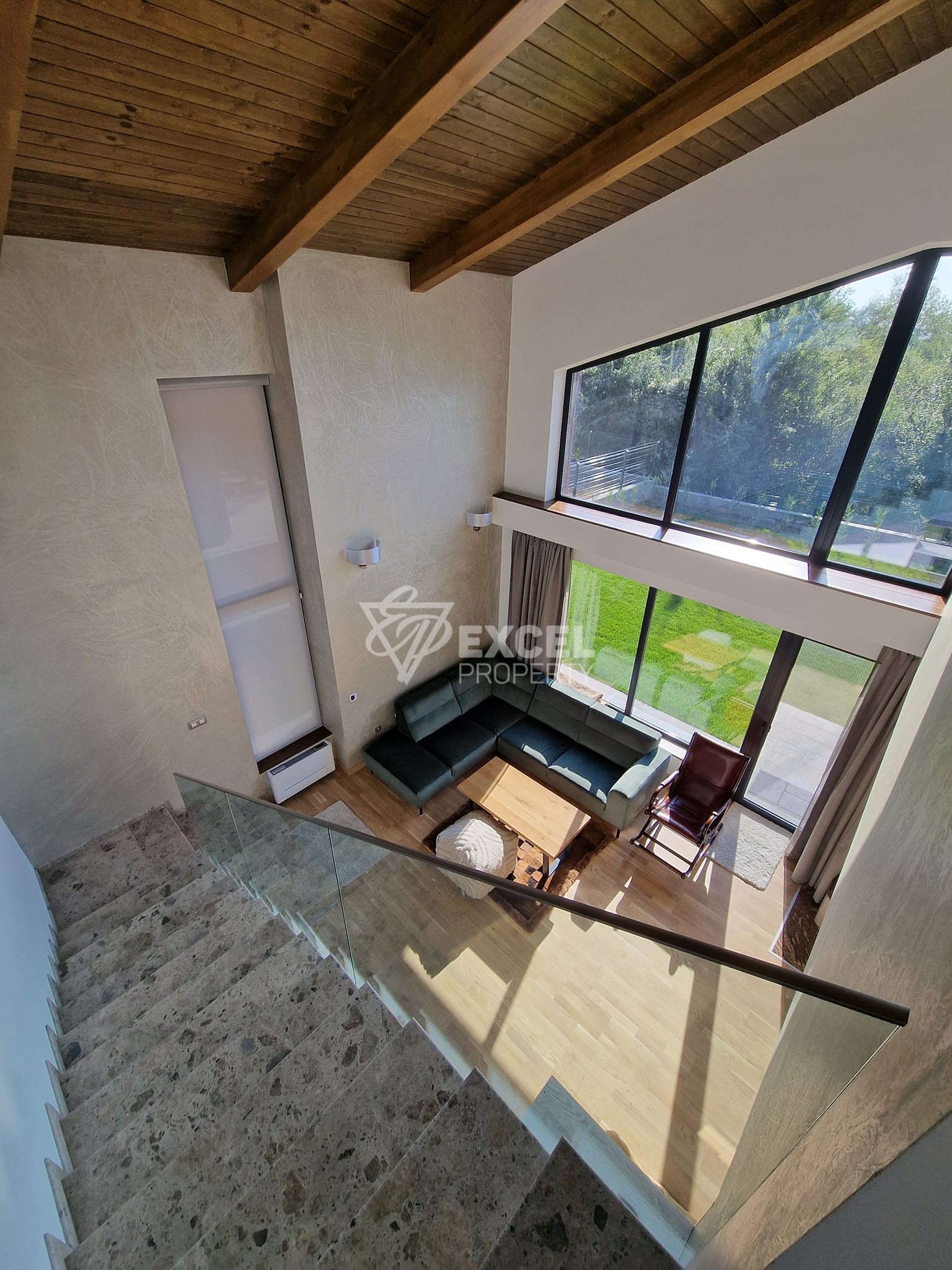 Дом оборудован тепловым насосом и фотоэлектрической установкой. Высококачественная отделка, оборудование и мебель!