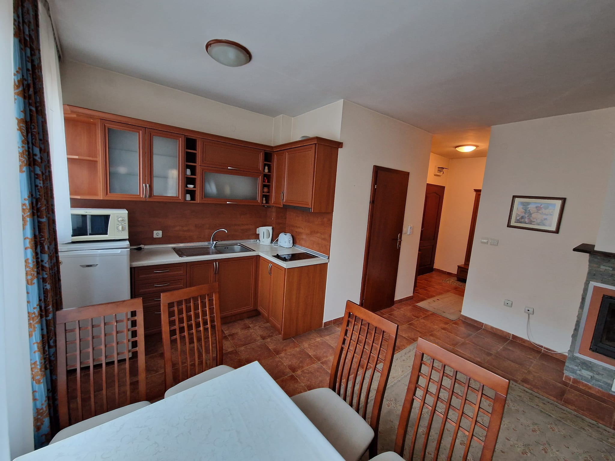 В квартире также есть небольшой шкаф. Владелец также будет иметь небольшой лыжный шкаф и две кладовые для дров.