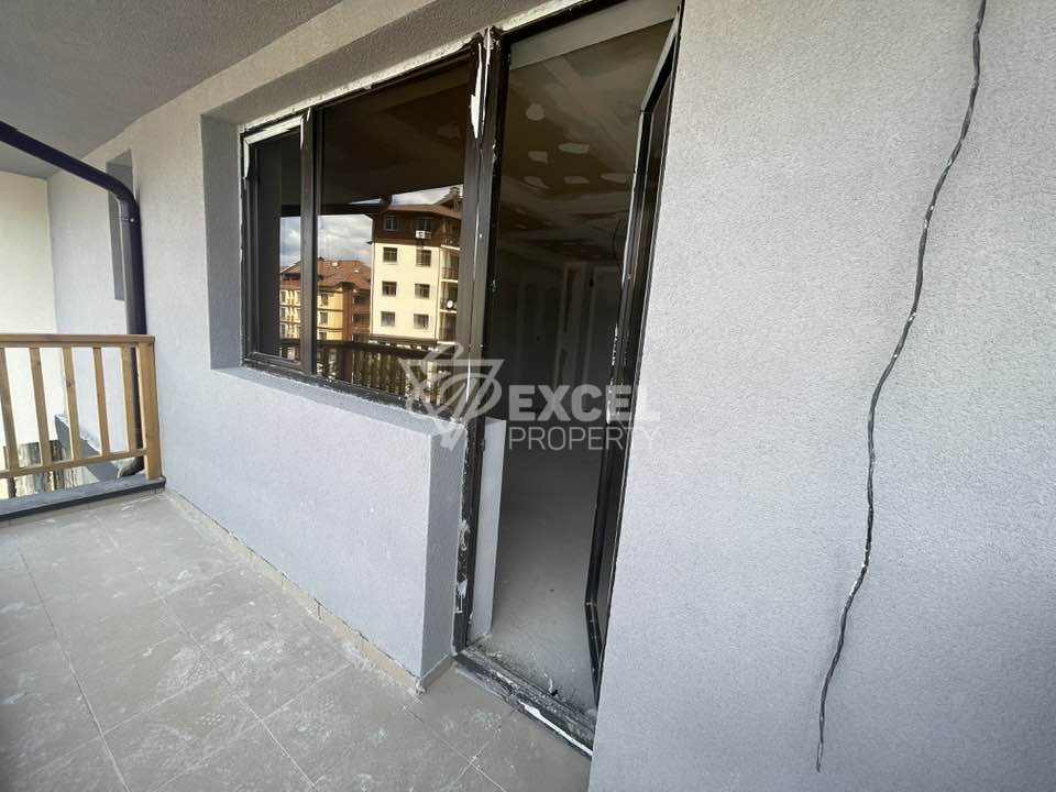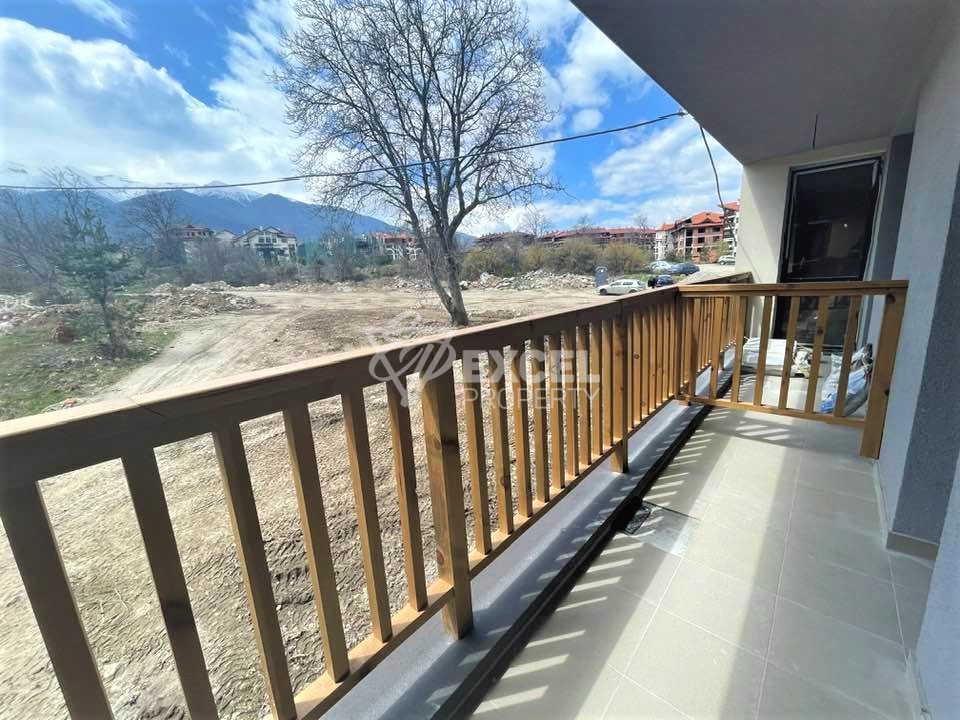 Недвижимость находится в новом жилом доме и имеет прихожую, просторную и светлую гостиную с кухонной зоной (розетки предоставляются) и спальню, ванную комнату и террасу. Экспозиция квартиры юго-западная, откуда открывается прекрасный вид на гору Пирин. Квартира расположена на высоком первом этаже четырехэтажного дома.
