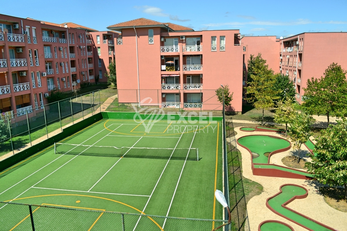 Предлагаем без комиссии от покупателя однокомнатную квартиру-студию в жилом комплексе Санни Дей 6, примерно в 3 км от моря и курорта Солнечный Берег. Квартира меблирована, имеется кухонный бокс: холодильник, плита, вытяжка, имеется раскладной диван, меблированная ванная комната с бойлером и туалетом, кондиционер, шкаф для одежды и телевизор. Общая площадь объекта – 25 м2, расположен на 2-м этаже /не последний/, лифта в комплексе нет. подходит для 2-х человек, для летнего отдыха или постоянного проживания. Из студии открывается вид на бассейн, но нет террасы.
