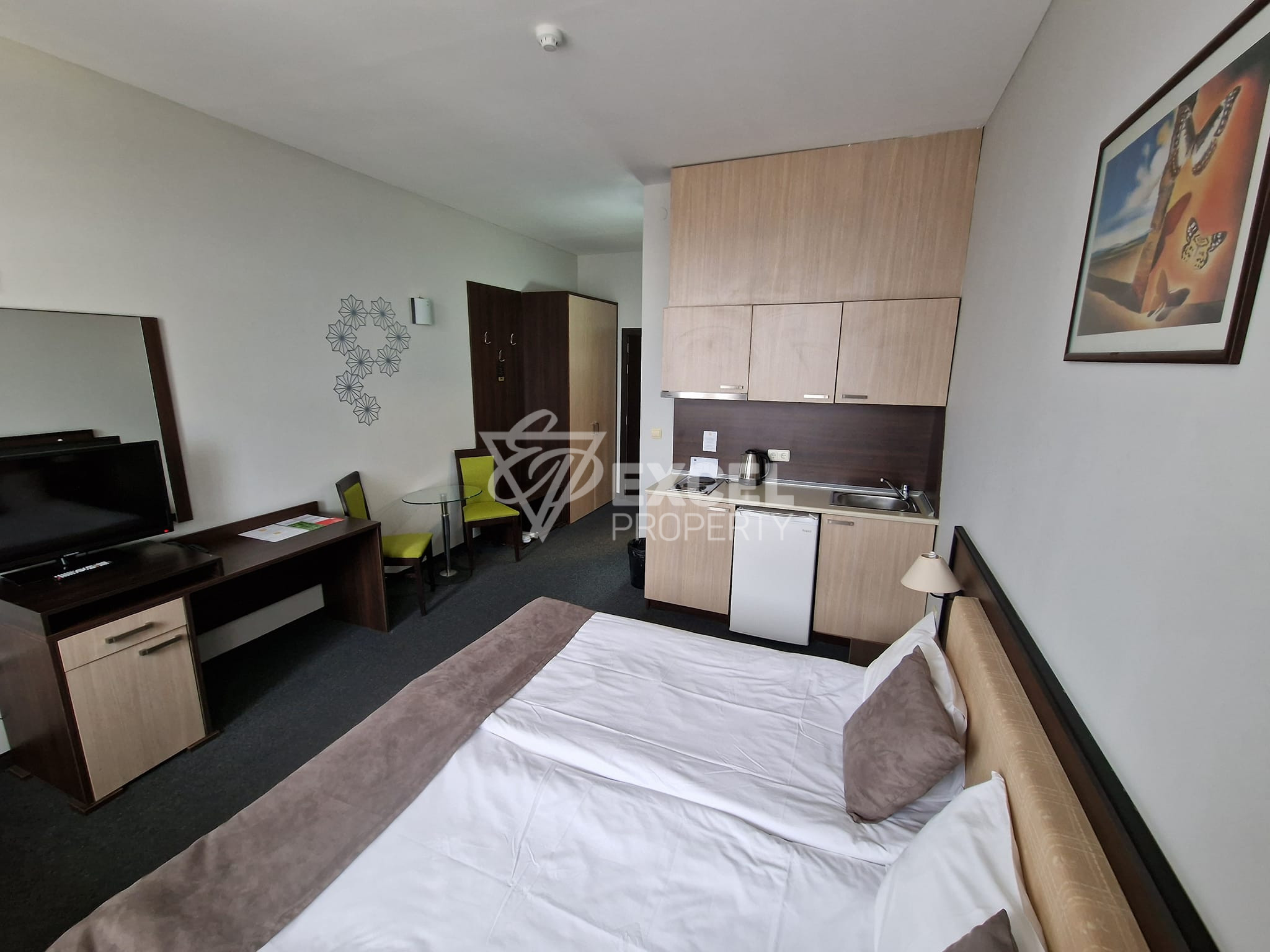 Excel Property представляет вашему вниманию меблированную, уютную квартиру (студию) на продажу в Банско. Недвижимость расположена на первом этаже апарт-отеля Guinness, всего в 200 метрах от начальной станции подъемника, в непосредственной близости от отеля Belvedere!