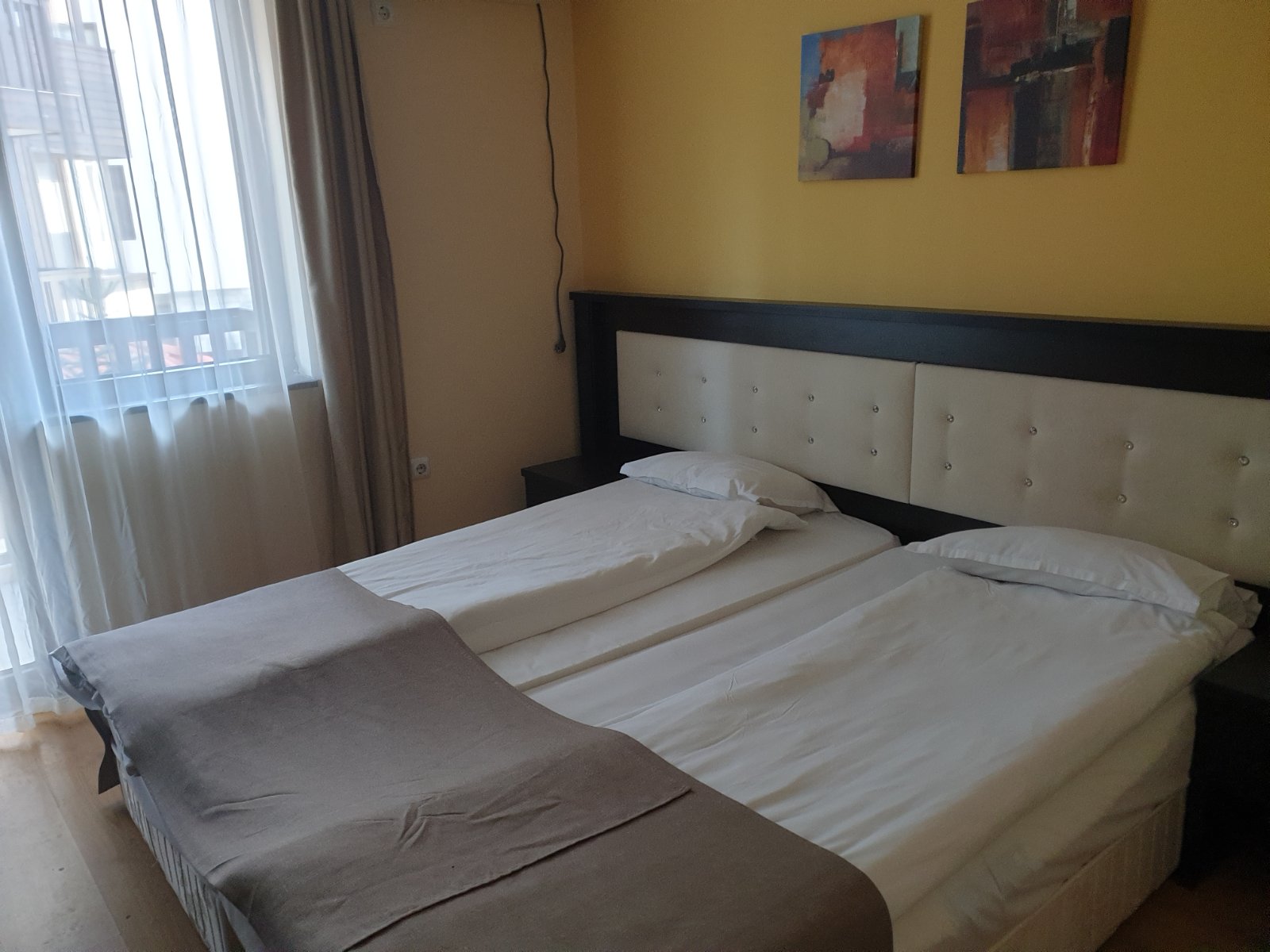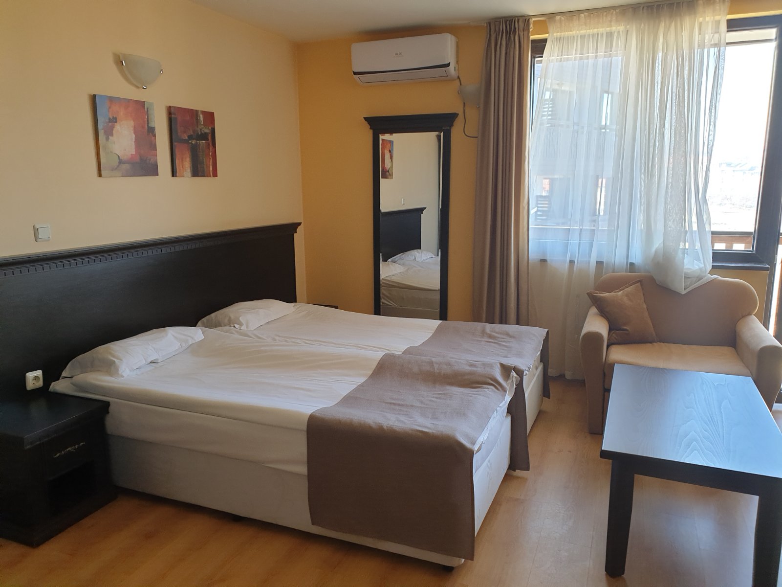 Квартира имеет площадь 42,27 кв.м. и прекрасный панорамный вид на город Банско и Пирин. Расположен на втором этаже и оснащен телефоном, кабельным телевидением и Интернетом. В комнатах отделка стен — латекс, полы — ламинат и терракота, окна ПВХ. Распределение комнат: прихожая, гостиная с кухней и юго-западная терраса с видом, одна ванная комната и туалет. Зимой комплекс является излюбленным местом лыжников и предлагает хороший сервис, хранение лыж и транспорт, регулярный транспорт до подъемника и обратно..