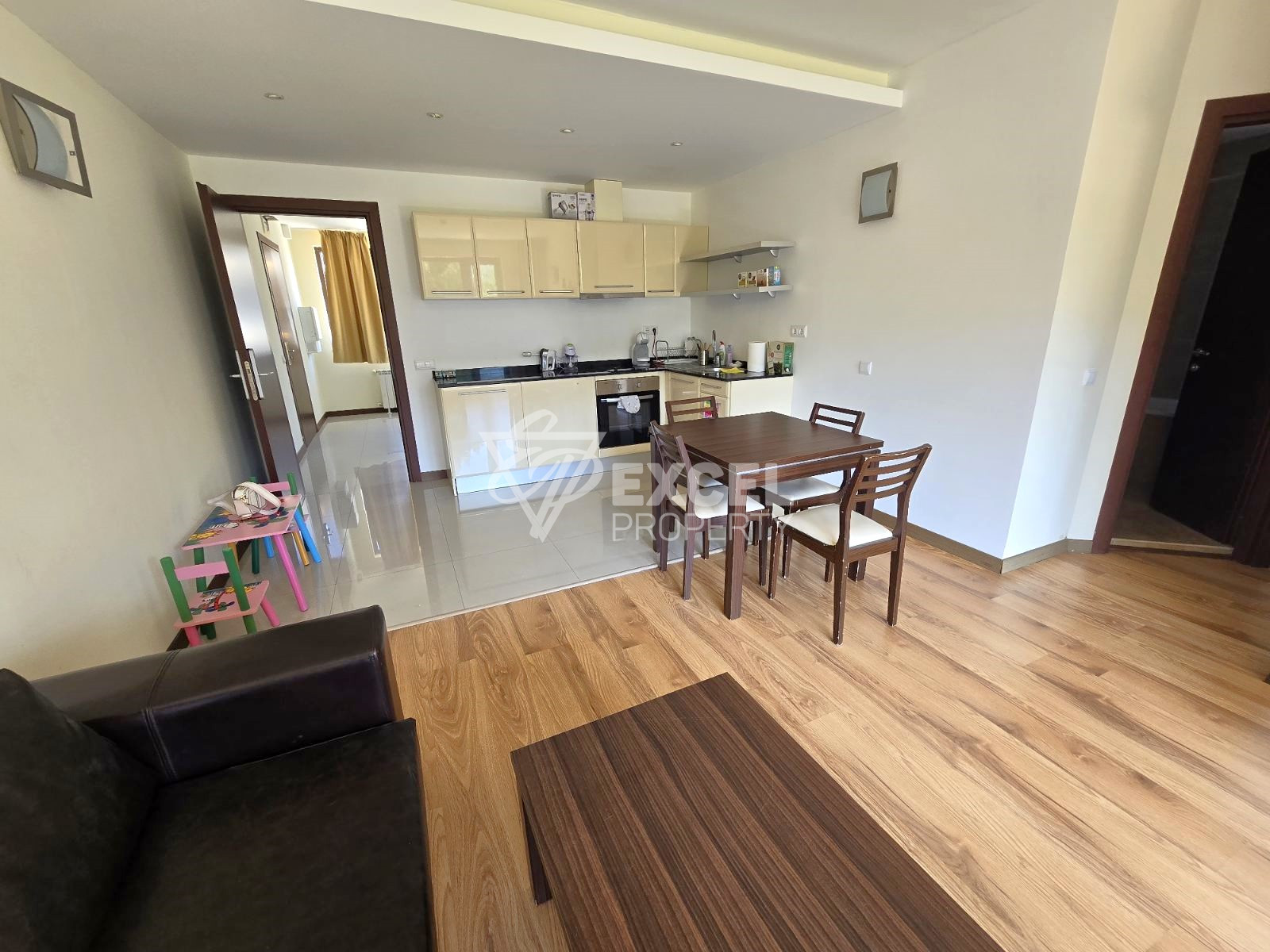Недвижимость расположена на втором жилом этаже и включает в себя прихожую, две спальни - одна из них главная спальня с собственной ванной комнатой с туалетом и ванной, вторую солнечную спальню, дополнительную ванную комнату с туалетом и душевой кабиной, просторную гостиную. гостиная с оборудованной кухней, обеденной зоной и зоной отдыха с уютной мягкой мебелью, терраса на южной стороне.