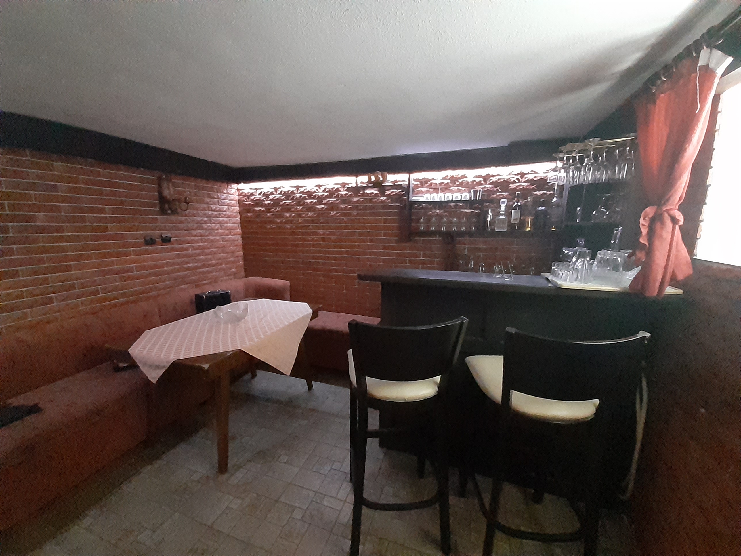 Дом имеет следующую планировку: один подземный этаж, на котором расположены кладовая, ванная с туалетом, кухня и просторная таверна с камином + три надземных этажа, первый из которых состоит из 3-х комнат ( раздельные и сплошные) - две спальни, кухня со столовой + ванная комната с душевой кабиной и туалетом. Столовая ведет на просторную веранду, на которую также можно попасть из одной из спален. Второй этаж имеет ту же планировку, что и первый - две спальни, ванная комната с душем и туалетом и кухня со столовой. Из столовой и из одной из спален есть выход на просторную террасу, а под ней есть еще одна терраса, которая имеет площадь 120 кв.м и может быть использована для барбекю или уголка для отдыха. Третий этаж - мансардный. Он состоит из одной просторной комнаты, которая имеет выход на террасу. Дом имеет два входа. Проведен трехфазный ток, водоснабжение, электроснабжение и канализация раздельные на дом и на помещение перед ним.